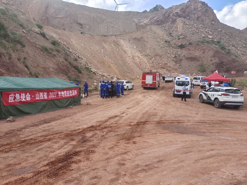 本次活动由怀仁市地震局主办,怀仁市应急管理局、怀仁市自然资源局、同煤建材有限责任公司协办。演练主要模拟“地震发生后引发的次生灾害滑坡”,包括地震次生灾害滑坡险情报告,避险撤离,应急调查三个环节。实地演练现场,当地政府相关领导在地震发生后第一时间赶赴现场,立即安排专业技术人员实地核实滑坡灾害情况,我公司全程配合政府部门,充分发挥专业技术优势,分析预判地震后现场滑坡体的稳定性,在确保安全的前提下,第一时间组织开展受灾人员安全撤离与救治,高效率、高质量、高水平地完成了每个阶段的工作任务,最终呈现出了一个真实、专业,具有较高指导意义和示范作用的地震应急避险演练活动。