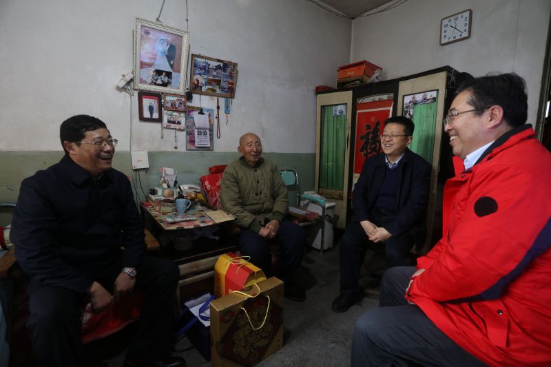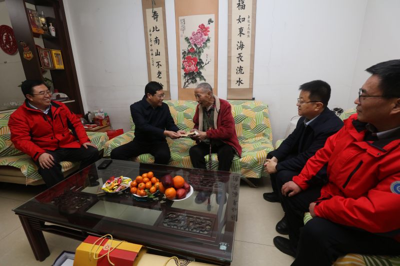 江荣一行先后来到老干部郭占超、老党员杨敬堂及生活困难党员董玉莲家中走访慰问。每到一户,江荣都与老同志促膝谈心,详细了解他们的身体状况和家庭情况, 悉心询问他们的生活起居情况和存在的困难,听取他们对单位发展的意见建议,感谢他们为地勘工作作出的贡献,同时送上慰问金和慰问品,并致以新春的问候和美好的祝愿。