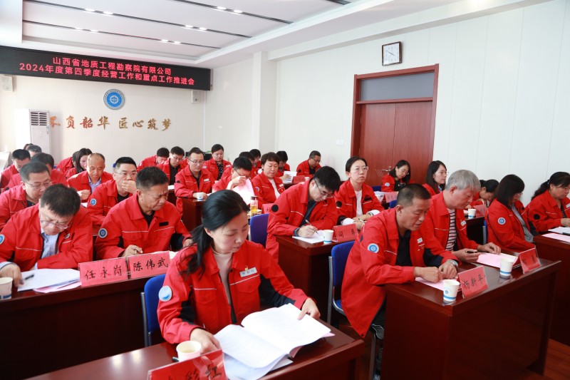 10月11日,地勘院有限公司召开2024年度第四季度经营工作和重点工作推进会,贯彻落实集团三季度经营和安全工作例会精神,总结公司前三季度经营情况,研判分析当前形势任务,安排部署四季度重点工作。公司党委书记、董事长赵政出席会议并讲话,公司党委副书记、副董事长、总经理施红政主持会议。